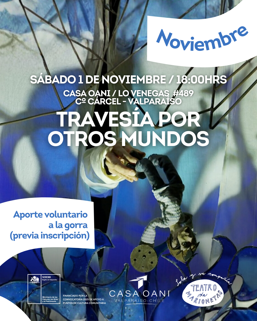 Actividad organizada por Fundación OANI de Teatro y financiada por la Convocatoria 2025 de Apoyo a Puntos de Cultura Comunitaria del Ministerio de las Culturas, las Artes y el Patrimonio.